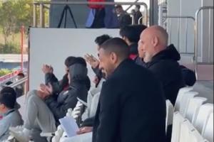 记者刘闻超晒出视频,海港主帅穆斯卡特本场比赛现场观战,在看到蒯纪闻进球后,穆斯卡特惊讶挑眉,笑容不断。