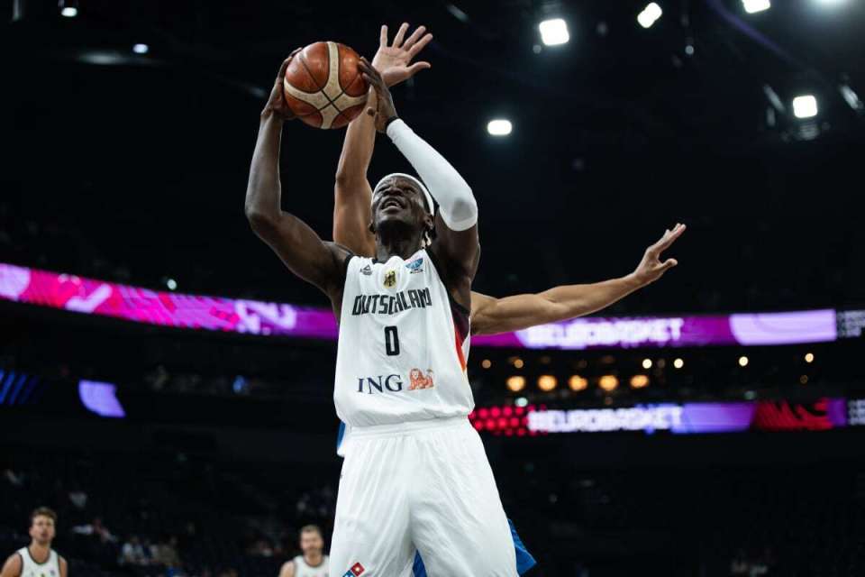 本场比赛中,德国队的先发侧翼大将艾萨克-邦加(Isaac Bonga)的表现还是比较稳定的。邦加全场出场20分24秒,投篮7中3,三分线外4中1,罚球2中1,得到了8分7篮板1盖帽的数据,还有1次失误,正负值为+20。邦加在进攻端虽然没有展现出足够稳定的得分能力和投射能力,但是他还是展现出了一定的得分能力并且得到了一些分数。邦加在防守端的表现其实是相当不错的,他也是展现出了超强的个人防守能力,他在篮板保护方面的表现也是值得肯定的,他在防守端也是起到很大的作用的。邦加的数据看起来并不是特别起眼,显得有些平庸,但是在场上也是起到了很好的效果,他也是为球队的胜利做出了自己的贡献。